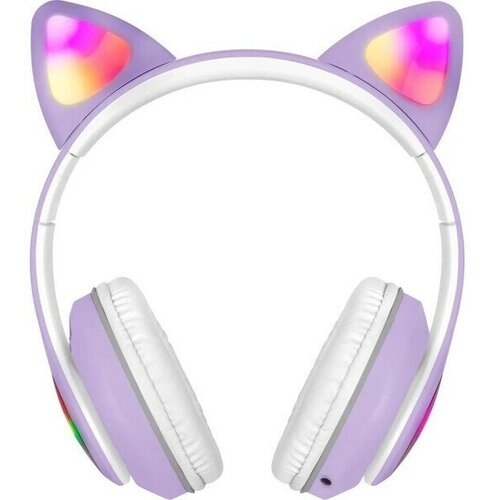 Наушники беспроводные детские Vivacat Meow, микрофон, AUX, слот для карты памяти, LED подсветка ушек, Bluetooth, голубые
