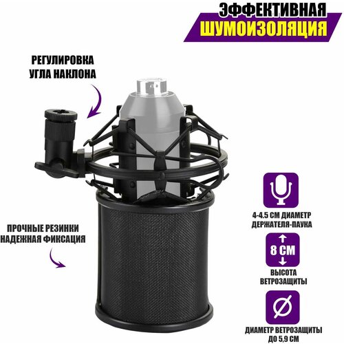 Усиленная микрофонная стойка MP-AK-PT2S с держателем микрофона паук и акустическим экраном ветрозащитой