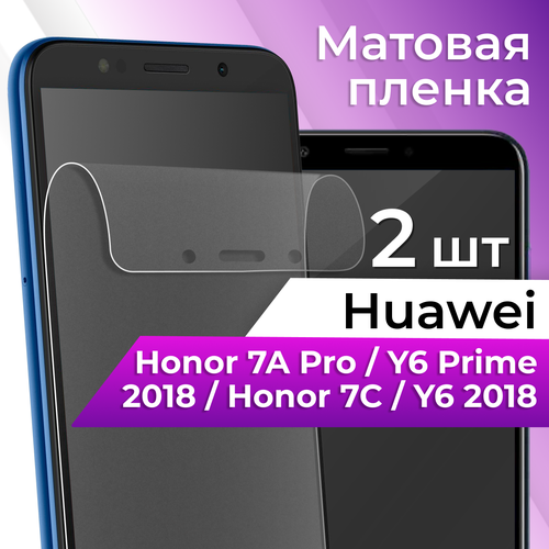Комплект 2 шт. Матовая защитная пленка для телефона Huawei Honor 7A Pro, Y6 Prime 2018, Honor 7C и Y6 2018 / Гидрогелевая противоударная пленка на смартфон Хуавей Хонор 7А Про, У6 Прайм 18, Хонор 7С и У6 18