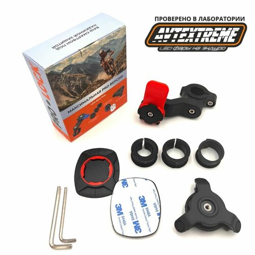 Держатель телефона с демпфером с креплением на руль мотоцикла, велосипеда, мопеда скутера с красным блокиратором PROLOCK