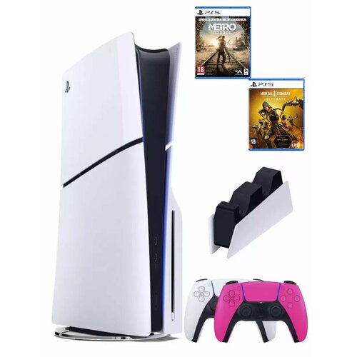 PS5 (ПС5) Игровая приставка Sony PlayStation 5 Slim + 2-й геймпад + зарядное + 2 игры Metro+ Mortal Kombat 11, 1000Gb