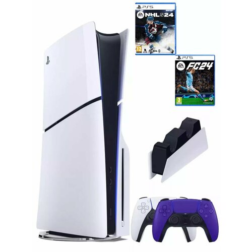 PS5 (ПС5) Игровая приставка Sony PlayStation 5 Slim + 2-й геймпад(фиолетовый) + зарядное + игра NHL 24+ Fifa24 , 1000Gb
