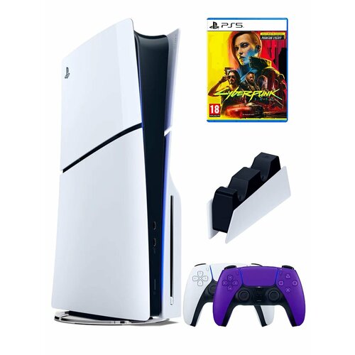PS5 (ПС5) Игровая приставка Sony PlayStation 5 Slim+2-й геймпад(фиолетовый)+зарядное + игра Cyber Pank, 1000 Гб
