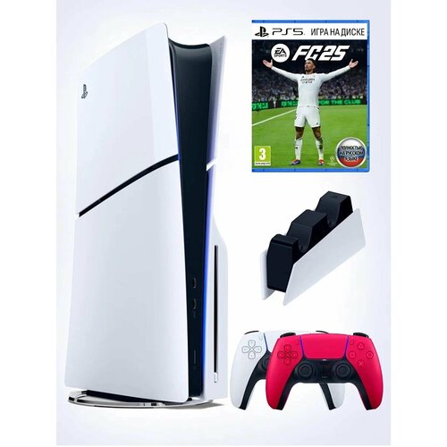 PS5 (ПС5) Игровая приставка Sony PlayStation 5 Slim disk+2-й геймпад(розовый)+зарядное+ FC25 , 1000 ГБ