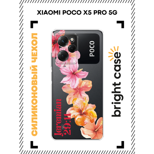 Чехол на Xiaomi Poco X5 Pro 5G / Сяоми Поко X5 Про 5G с принтом Милые гибискусы, прозрачный
