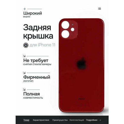 Задняя крышка (стекло) Широкий вырез для iPhone 11 (Red)