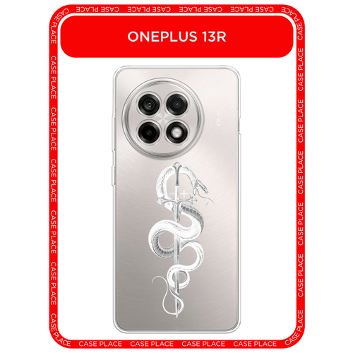Чехол на Oneplus 13R/Ace 5/5 Pro / Ван Плас 13R/Асе 5/5 Про с принтом Змея с мечом белая, прозрачный