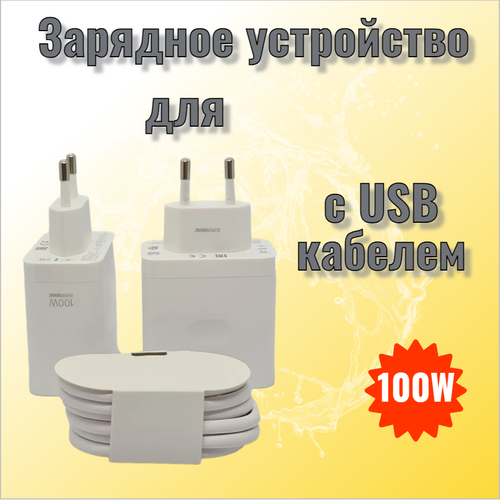 Зарядное устройство для Samsung 45W / Адаптер питания + кабель USB Type-C 5A / Супер быстрая зарядка 45W / White