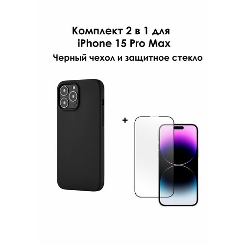 Комплект 2в1: Силиконовый чехол для Apple iPhone 15 Pro Max и защитное стекло 3D
