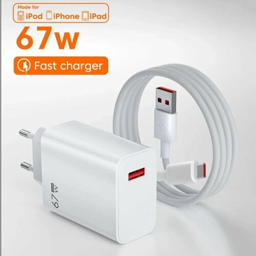 Сетевой адаптер 67W в комплекте с кабелем Type-C USB 6A / Сетевое зарядное устройство