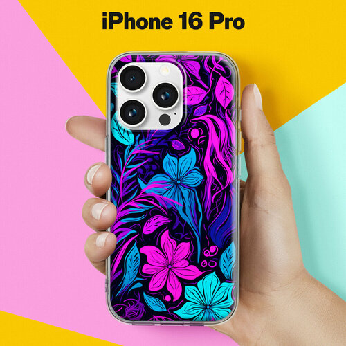 Силиконовый чехол на iPhone 16 Pro с принтом "Фиолетовые Цветы" с прозрачными бортиками