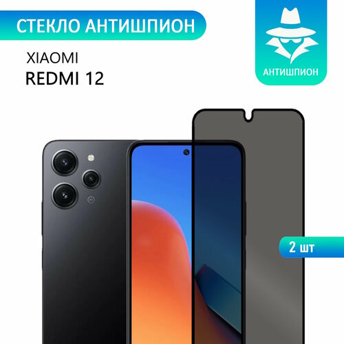 2 шт. Защитное противоударное стекло антишпион для Xiaomi Redmi 12 с черной рамкой стеклович