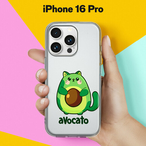 Силиконовый чехол на iPhone 16 Pro с принтом "AvoCato" с прозрачными бортиками