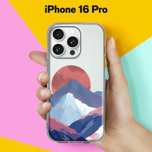 Силиконовый чехол на iPhone 16 Pro с принтом "Горы" с прозрачными бортиками
