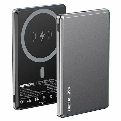 Внешний аккумулятор Remax Ultra Thin Magnetic Wireless Charger MagSafe 20W 5000 мАч Grey