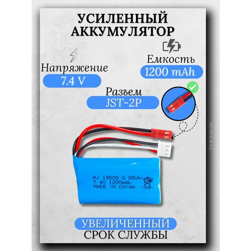 Аккумулятор 7.4V 1200mAh Li-Ion 14500, разъем JST - 2P