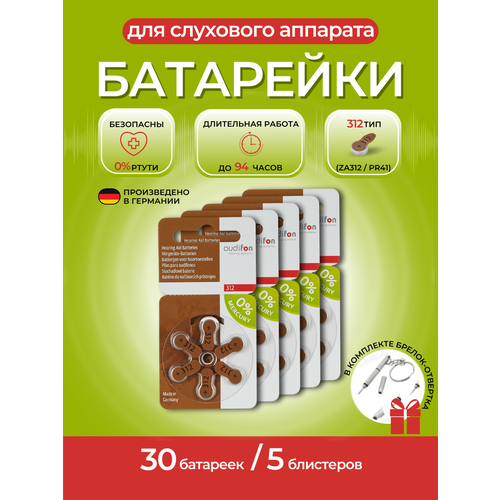 Батарейки для слуховых аппаратов Audifon ZA312 30 штук