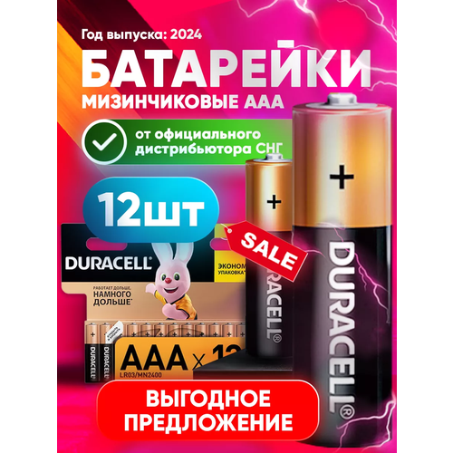 Батарейки дюрасел мизинчиковые ААА 12 шт комплект батарейка Duracell