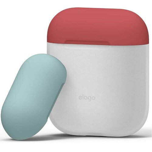 Силиконовый чехол Elago Duo Case для AirPods 1&2, цвет Белый с синим свечением с крышками "Итальянская роза" и "Голубой коралл" (EAPDO-LUBL-IROCBL)