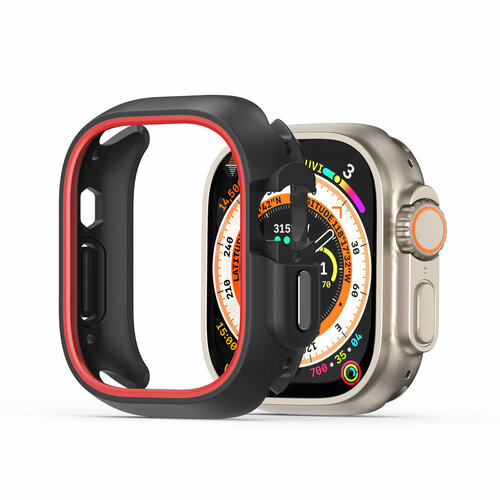 Чехол-бампер для часов Apple Watch Ultra 1 и 2 размер 49мм, черный с красной вставкой (Black/Red) от Dux Ducis, серия Bamo Series Case