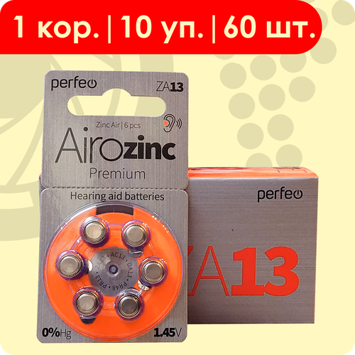 Perfeo 13 (Оранжевый) Airozinc | 1.45 Вольт, Батарейки для слуховых аппаратов - 60 шт.