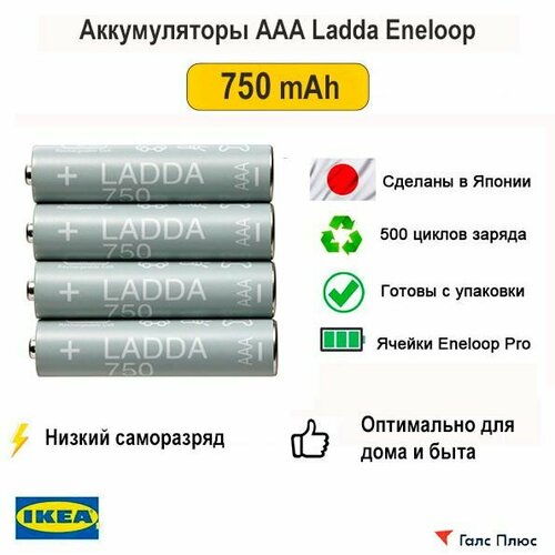 Аккумулятор AAA Ladda Eneloop 750mAh Япония, 4шт