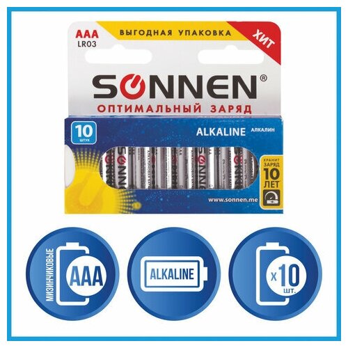 Батарейка Sonnen AAA/LR03 (1.5 В) алкалиновая (блистер, 10шт.) (451089), 6 уп.