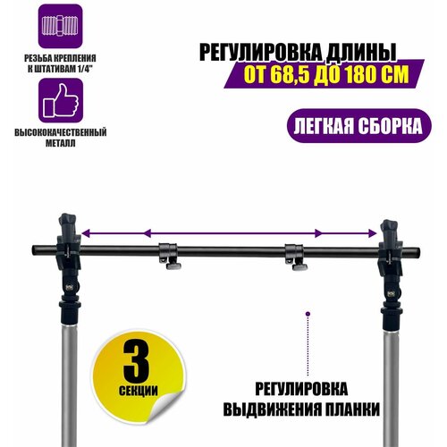 Горизонтальная планка P3 для каркаса фотофона с креплением зажимом к штативу с резьбой 1/4", ширина до 1.8 м