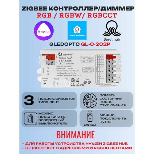 ZigBee Диммер / контроллер GLEDOPTO 12-24V 3in1 RGB+CCT/RGB/RGBW
