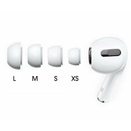 Комплект амбушюр для AirPods Pro, Pro 2 (4 размера: XS, S, M, L), 4 размера, силикон, белые