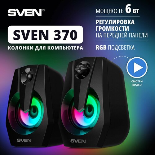 SVEN 370, чёрный, USB, акустическая система 2.0, мощность 2x3 Вт(RMS), подсветка