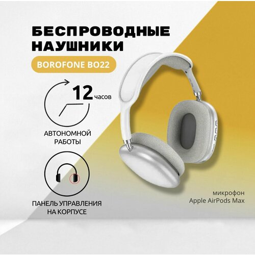 Наушники беспроводные BOROFONE с микрофоном, Bluetooth, 3.5 мм, серебристый