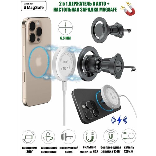 Автомобильный держатель MagSafe на вентиляционную решетку с беспроводной зарядкой для iPhone 12 / 13 серий