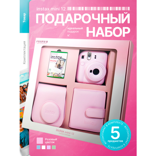 Супер большой Набор c Фотоаппаратом моментальной печати Fujifilm Instax Mini 12 Розовый, 10 предметов в наборе