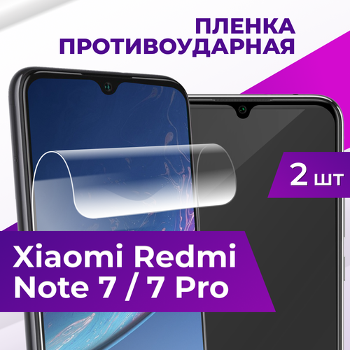 Комплект 2 шт. Глянцевая защитная пленка для телефона Xiaomi Redmi Note 7 и Note 7 Pro / Гидрогелевая противоударная пленка на смартфон Сяоми Редми Нот 7 и Нот 7 Про