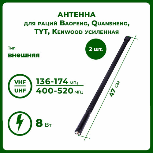 Антенна для раций тактическая усиленная 47 см, 136/520 МГц, комплект 2 шт
