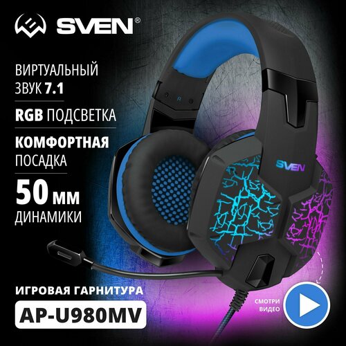 Проводные наушники SVEN AP-U980MV, черный/синий