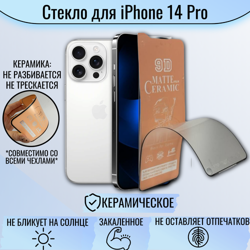 Защитное стекло iPhone 14 Pro матовое противоударное покрытие керамика анти скол Айфон 14 про