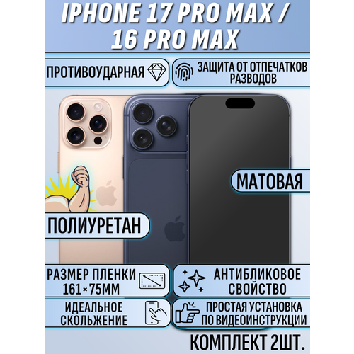 Гидрогелевая пленка для IPhone 16 pro max / 17 pro max матовая на весь экран 2 шт