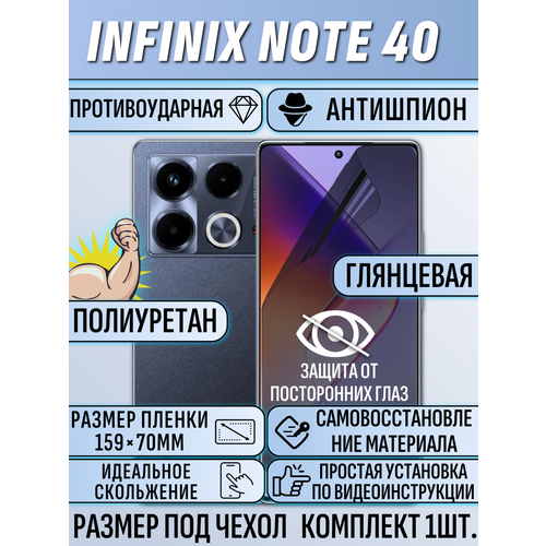 Гидрогелевая пленка для Infinix Note 40 антишпион покрытие под чехол