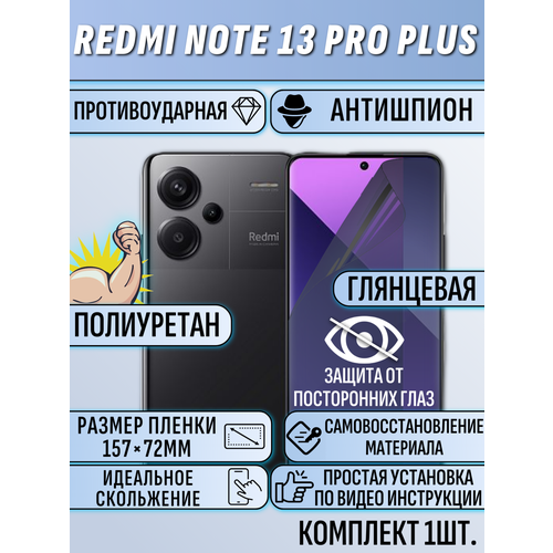 Гидрогелевая пленка для Xiaomi Redmi Note 13 Pro Plus антишпион глянец под чехол