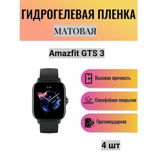 Комплект 4 шт. Матовая гидрогелевая защитная пленка для экрана часов Amazfit GTS 3 / Гидрогелевая пленка на амазфит гтс 3