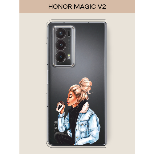 Чехол на Honor Magic V2 / Хонор Меджик V2 с принтом Cute girl, прозрачный