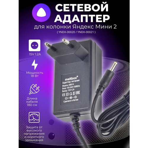 Блок питания для Яндекс Станции мини 2 Алиса 15V 1.2A штекер 4.0х1.7 (кабель 180см)