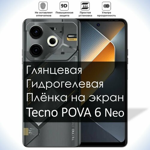 Гидрогелевая плёнка на экран Tecno Pova 6 Neo, Глянцевая долговечная премиум плёнка под чехол для Текно Пова 6 Нео