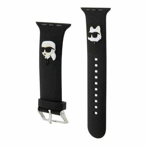 Karl Lagerfeld для Apple Watch 45/44/42 mm ремешок 3D Rubber NFT Karl & Choupette heads Black