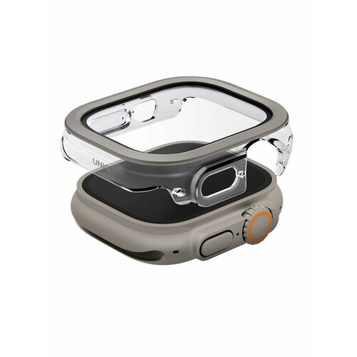 Uniq для Apple Watch 49 mm чехол VOUTE with 9H Tempered Glass Titanium Silver