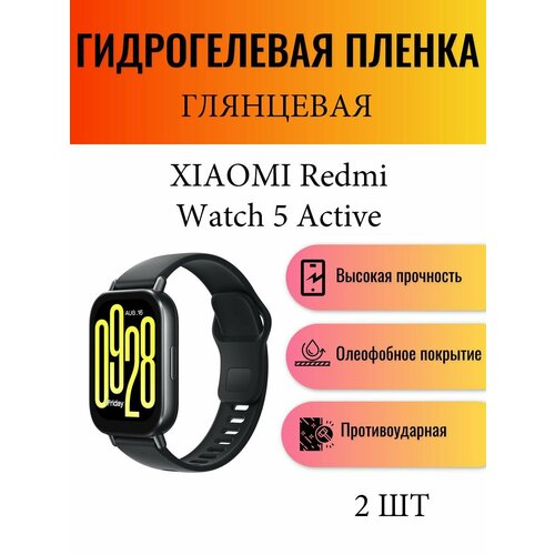 Комплект 2 шт. Глянцевая гидрогелевая защитная пленка для экрана часов Xiaomi Redmi Watch 5 Active / Гидрогелевая пленка на ксиоми редми вотч 5 актив
