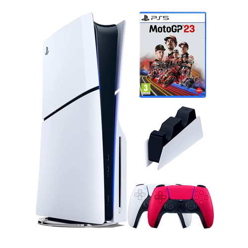 PS5 (ПС5) Игровая приставка Sony PlayStation 5 Slim disk+2-й геймпад(красный)+зарядное+ MotoGP 23, 1000 ГБ