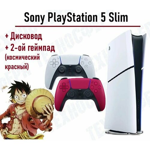 Sony PlayStation 5 Slim, с дисководом, + 2й космически красный геймпад PS5